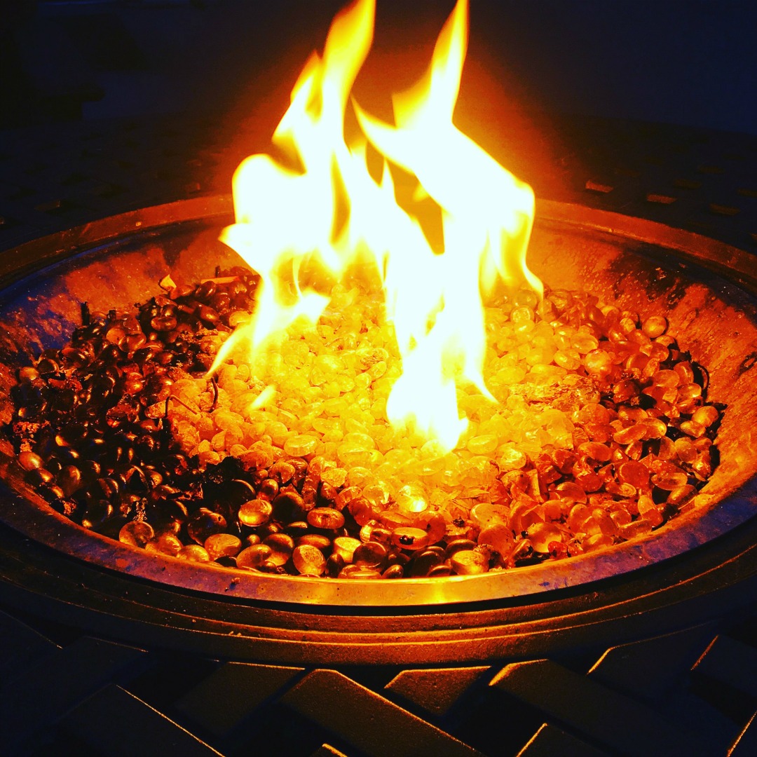 At night the place glows with light from the fire features and bistro lights. The resort is even more cozy after sunset.