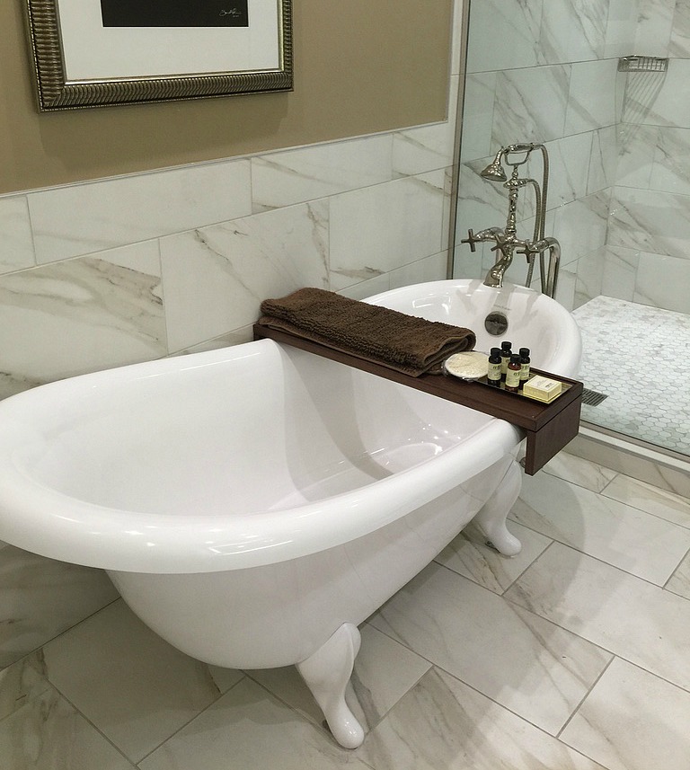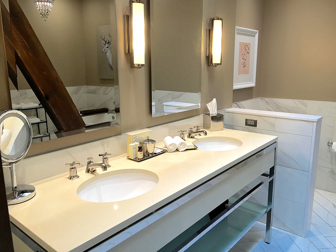 A double-sink is nice for couples while the tub would fit a family. Seriously–it’s enormous, you can’t really tell from the photo, but if you were over 6ft, you’d still have plenty of leg room. I took four baths in two days because this tub was so inviting.