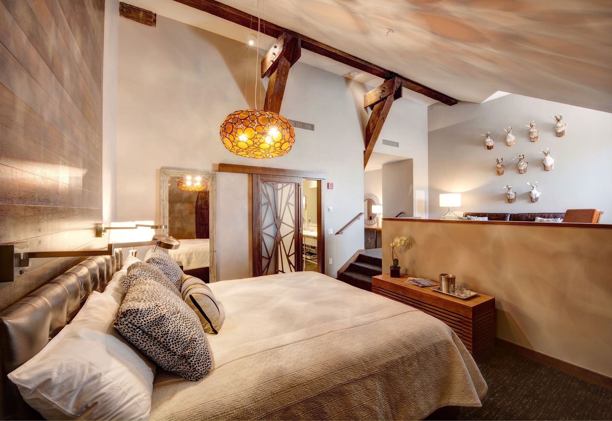 If you are a design geek like me, you will go bananas for The Crawford. Each of the three floors embodies design elements from different eras of the building’s history. Every room is unique. I got to see a couple of rooms and they both knocked my socks off. We stayed in a LoDo Suite. It has a living room, bedroom and two bathrooms. This was originally the attic space of the building, and they left raw exposed beams in tact, as well as delicious exposed brick.