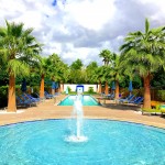 The OH Pool is festive with a fire pit and a pool bar. It has circular loungers that look like they are straight out of the Jetsons. It’s an uptempo atmosphere, but if you want a more serene pool experience, you can enjoy the lap pool and fountain.