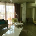 Bathrooms are wide open with sparkling celadon green tiles and huge bathtubs and showers. Located within the walk-in closet is a washer and dryer which is great for families. But see how sexy it is? It’s sleek.