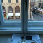 Breakfast is extensive, with a huge buffet served in a pretty dining room with painted wood panels and views of Maximilian Street. They have just about everything you can imagine for breakfast with a huge variety of breads and pastries, a full honey comb tray straight out of the hive, a variety of juices, savory hot dishes, cheeses and my personal favorite breakfast–coffee drinks.