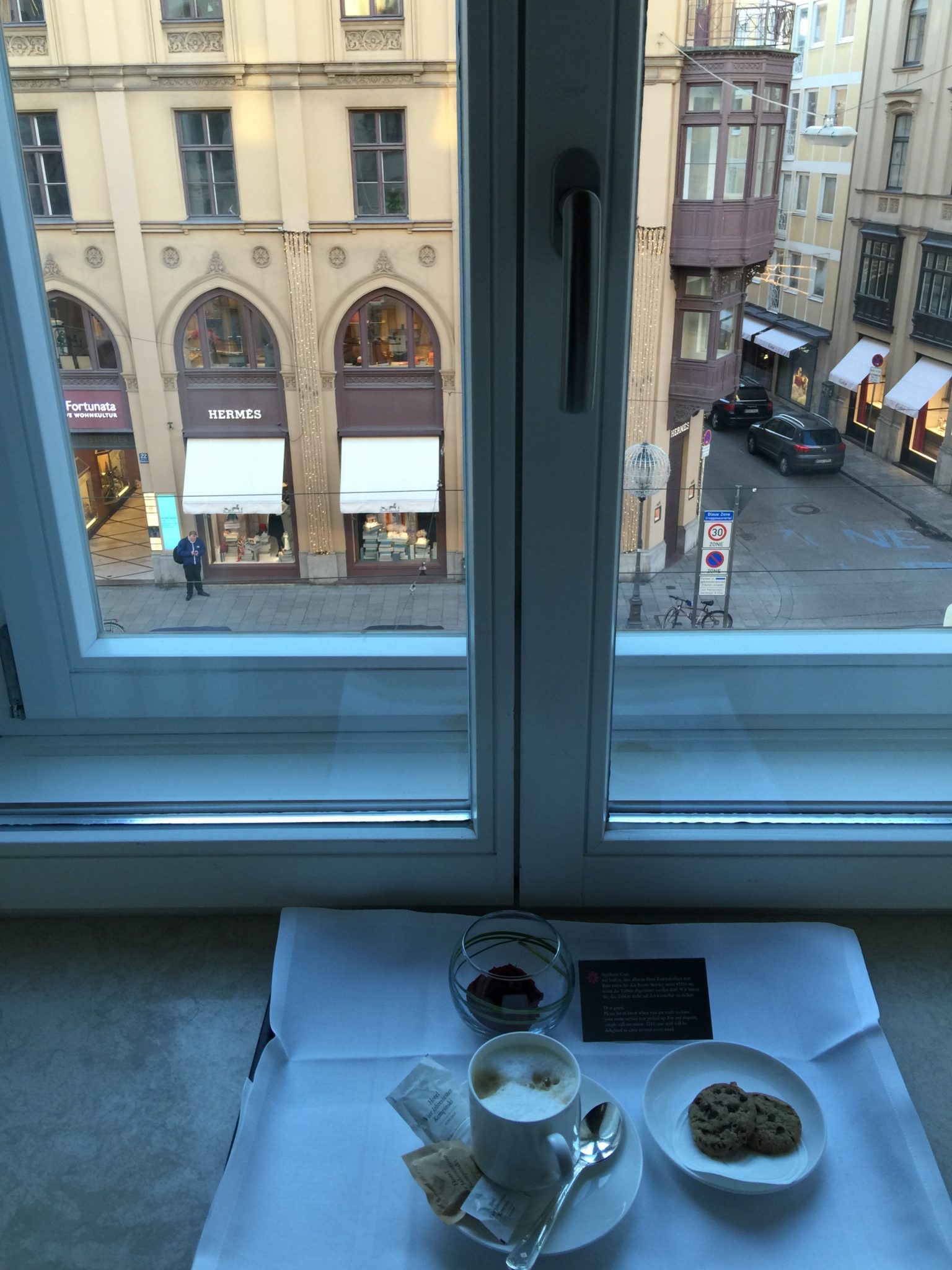 Breakfast is extensive, with a huge buffet served in a pretty dining room with painted wood panels and views of Maximilian Street. They have just about everything you can imagine for breakfast with a huge variety of breads and pastries, a full honey comb tray straight out of the hive, a variety of juices, savory hot dishes, cheeses and my personal favorite breakfast–coffee drinks.