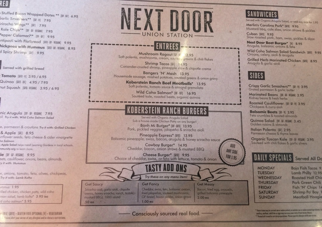 The Kitchen Next Door, in Denver Union Station, offers organic farm to table food, a fun, energetic atmosphere and a super friendly welcoming staff. The “Community through Food” concept behind The Kitchen is that people connect through food, similar to how it is at home–the kitchen is the heart and soul of the house. It’s an ideal place to grab lunch when you are downtown, or at Union Station. And if you like beets, you are in big luck.